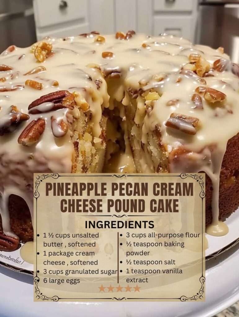 This Pineapple Pecan Cream Cheese Pound Cake is a decadent and moist dessert that combines the richness of cream cheese with the tropical sweetness of crushed pineapple and the crunch …